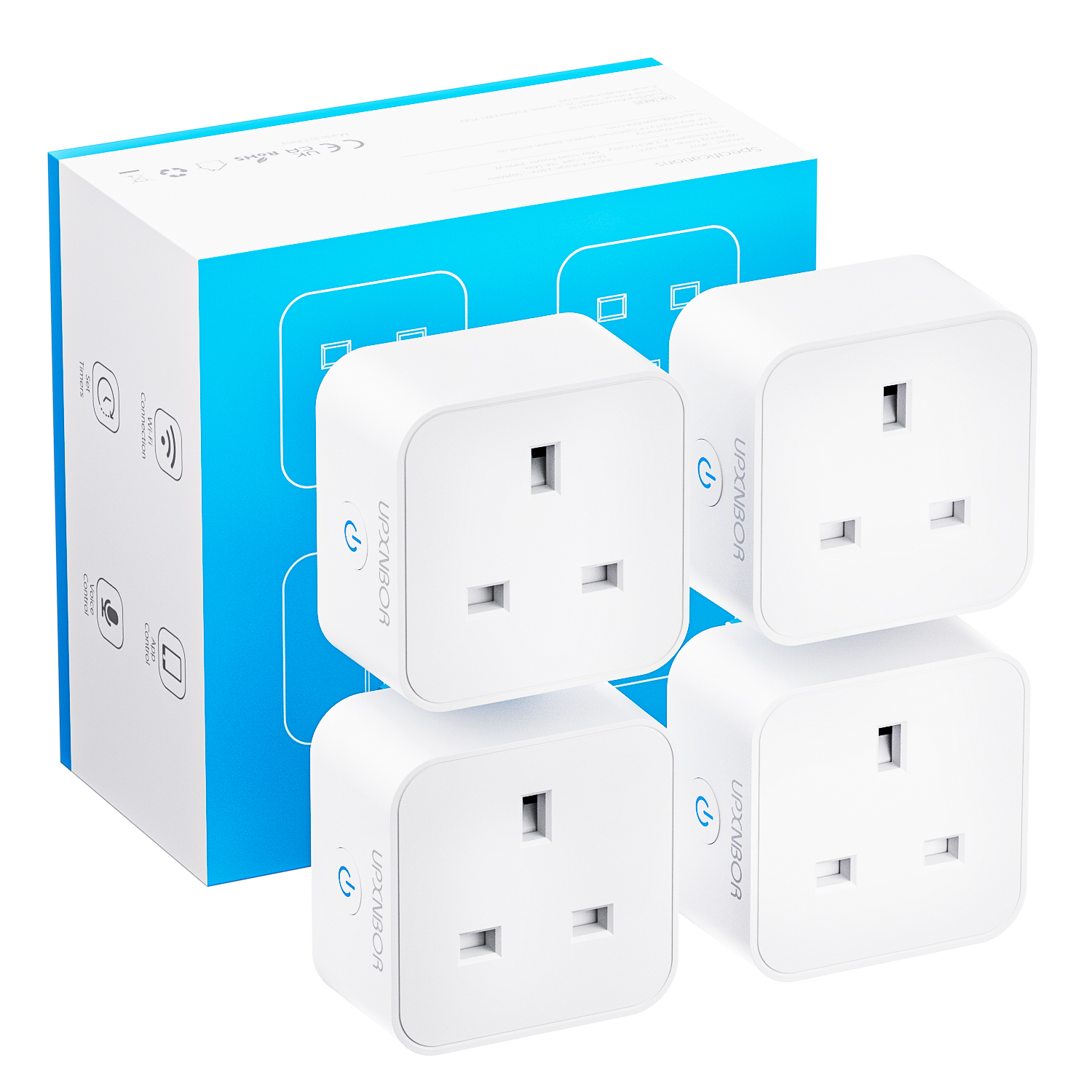 UPXNBOR Smart Plug with Energy Monitoring, 2.4GHz WiFi Plug, Smart Life APP Wireless Remote Control and Timer Function, Work with Alexa and Google Home, 13A(4 PACK)