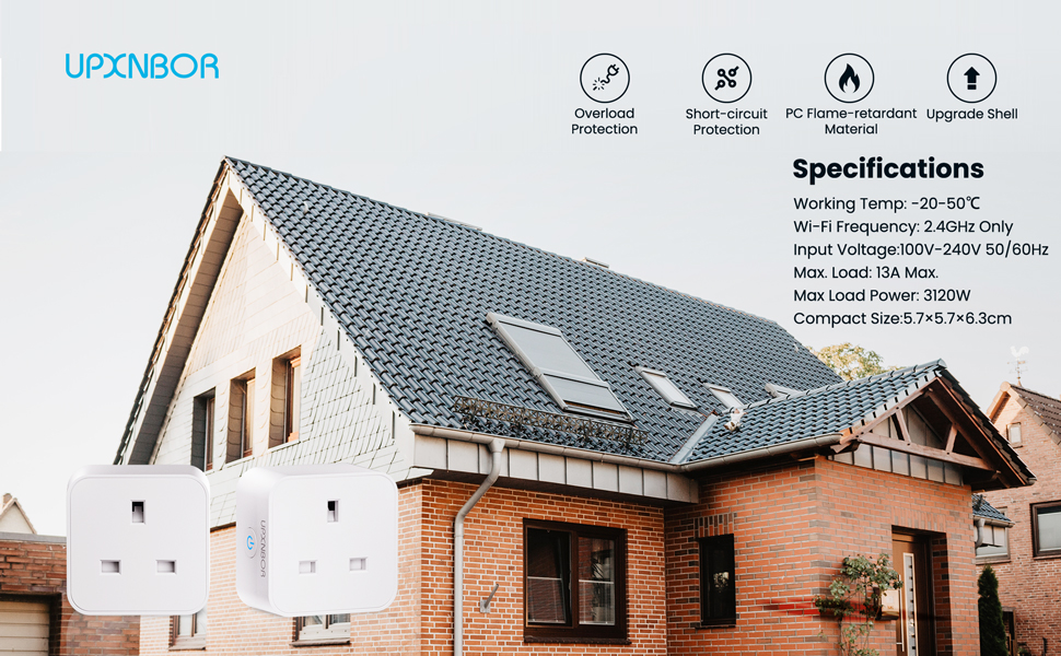 UPXNBOR Smart Plug with Energy Monitoring, 2.4GHz WiFi Plug, Smart Life APP Wireless Remote Control and Timer Function, Work with Alexa and Google Home, 13A(1 PACK)
